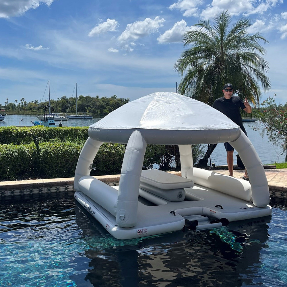 Looking for the ultimate water toy for your summer shindigs and social events? Look no further than the GFP-012 Wholesale Platform floating yacht from GRwaterpark. This inflatable yacht comfortably seats up to 9 adults and measures 250cm x 250cm x 96cm when inflated (96in x 96in x 38in).